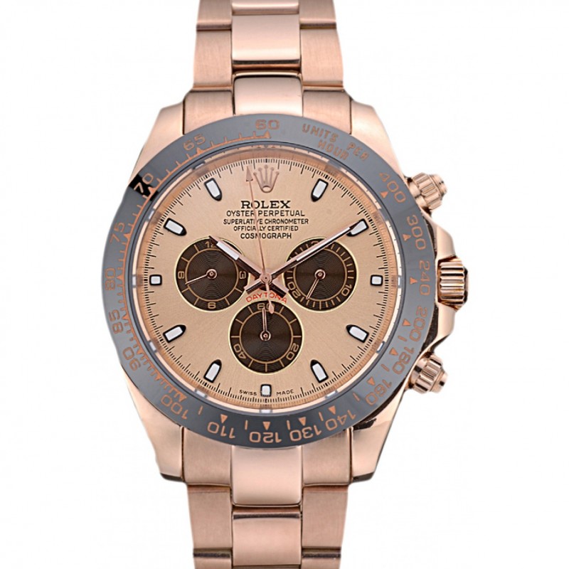 Rolex Daytona Ion Plated Tachymeter Rose Gold Strap Rose Gold Dial 80244 Replica Watches